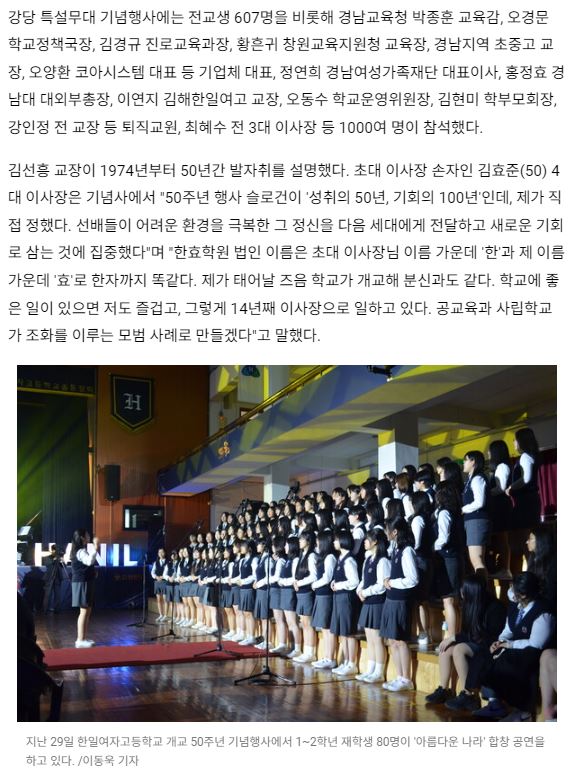 마산 한일여고, 오는 29일 개교 50주년 기념행사 열린다 :"미래는 오늘 내가 만든다"_프레시안