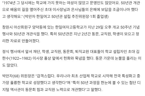 "못 배운 한 풀어준 것에 감사" 50주년 한일여고 동문들 눈물_경남도민일보