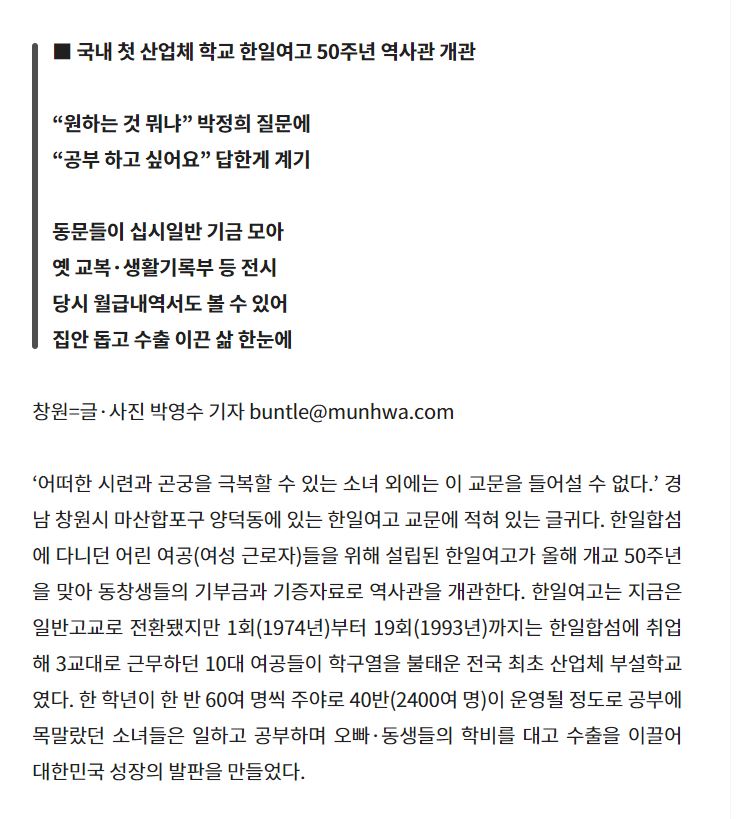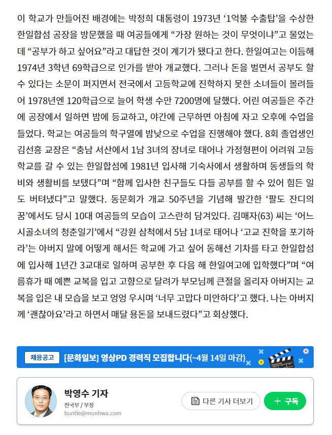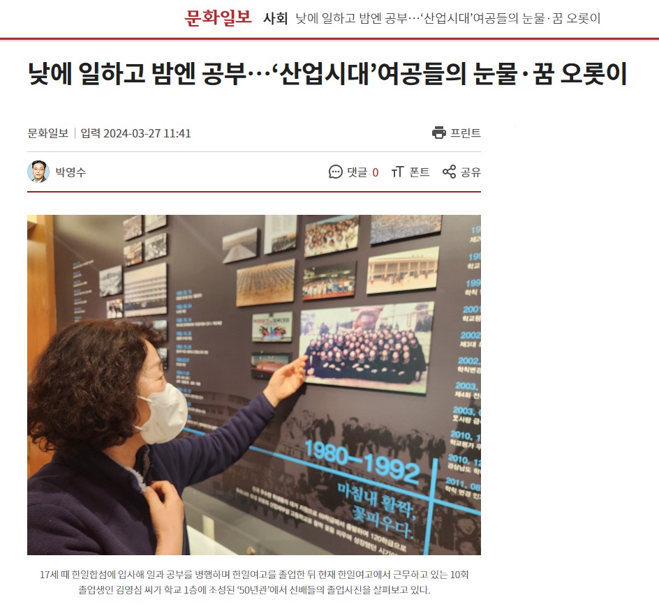 낮에 일하고 밤엔 공부...문화일보 기사 링크